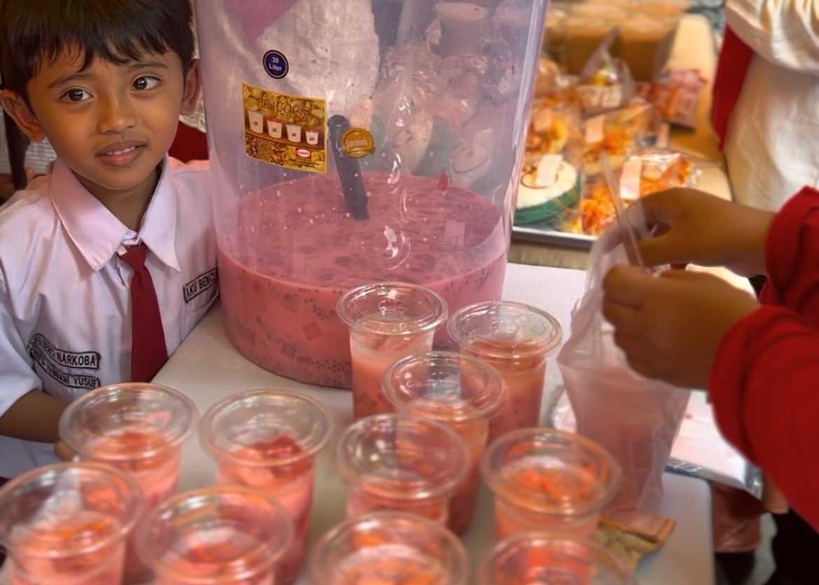 Sejak pagi, suasana sekolah berubah menjadi seperti pasar mini yang penuh keceriaan. Di tiap kelas, orang tua murid membuka “tenant” dengan aneka sajian makanan dan minuman. Mulai dari kudapan tradisional, camilan sehat, hingga minuman segar kekinian tersaji dengan rapi. Siswa berkeliling mengamati bagaimana proses jual-beli terjadi. Mereka menyaksikan orang tua mereka berinteraksi dengan pengunjung, menawarkan produk, menerima pembayaran, serta memberikan pelayanan dengan ramah.